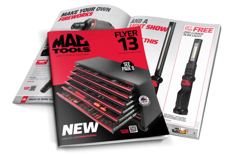 Save big on our best deals through 12/21/25! Flyer pricing is ONLY honored through a Mac Tools Distributor or through Customer Service (800-MAC-TOOLS).