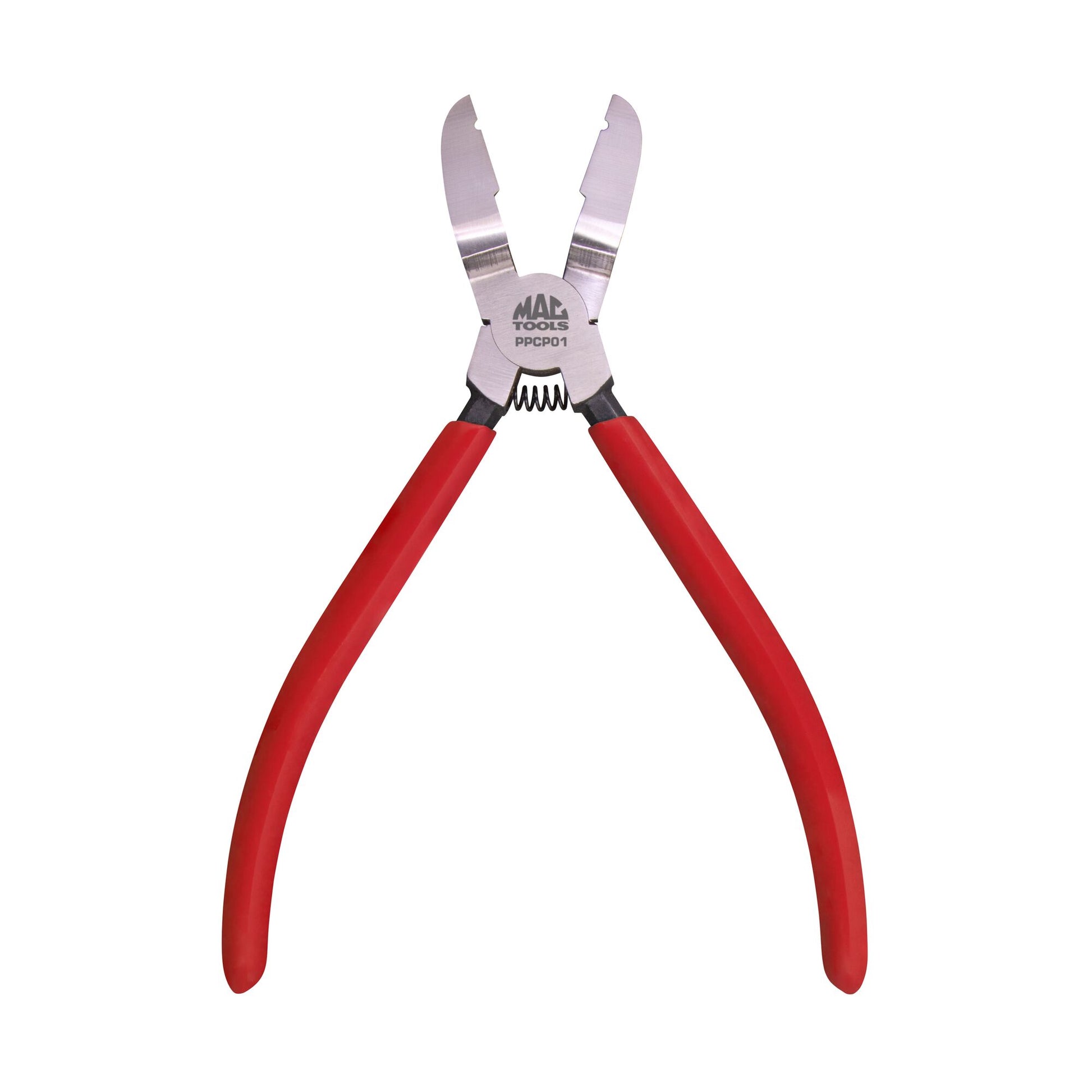 - Dual-function jaws have a relief area to grasp the fasteners and a sharp, angled ground edge to cut